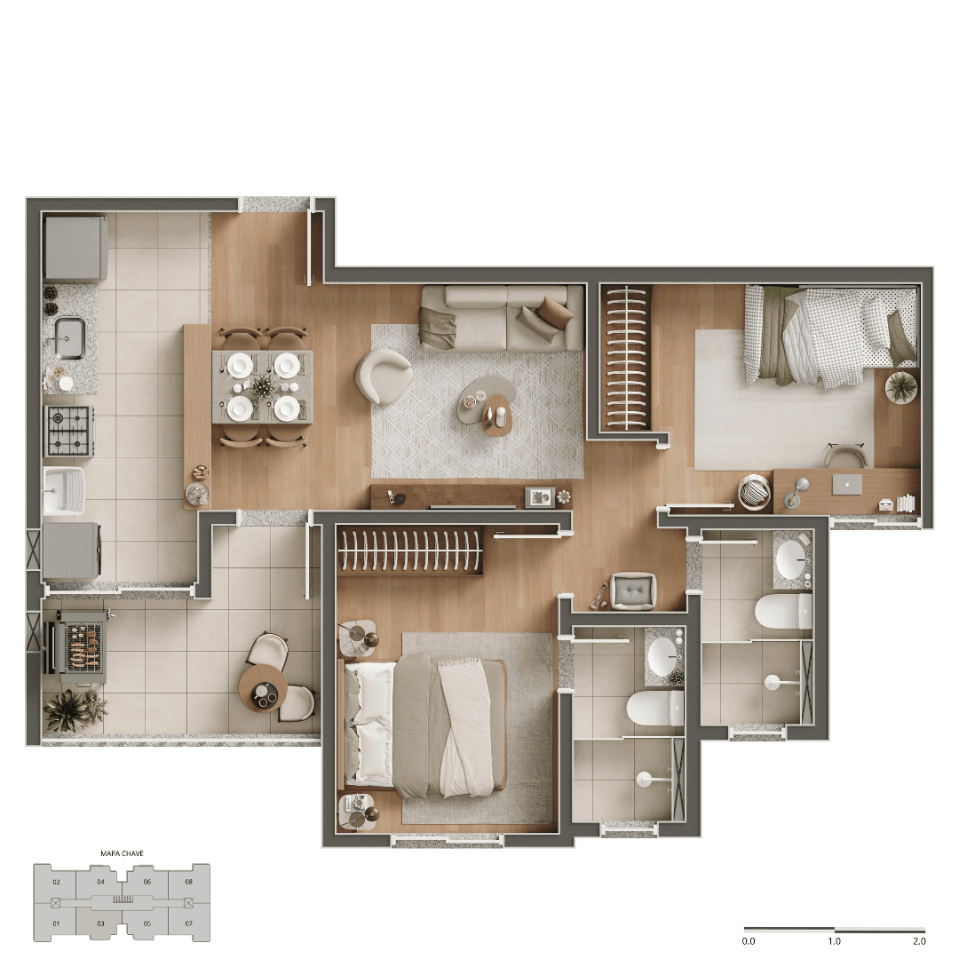 - Conforto sob medida: Apartamentos modernos com excelente aproveitamento de cada metro quadrado.